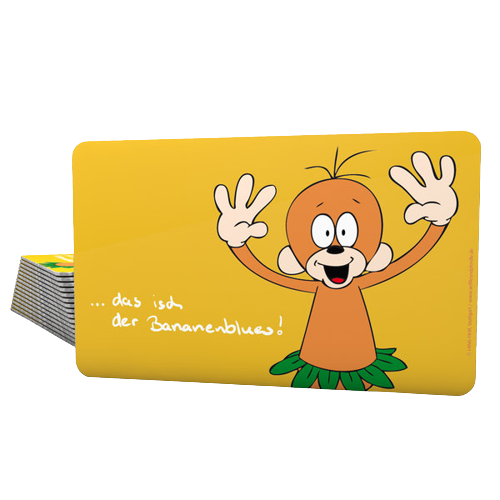 Vesperbrettle mit Äffle-Motiv aus hochglänzendem Melamin-Kunststoff. Spülmaschinenfest. Größe 23,5 cm x 14,5 cm.